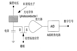 图2-1 平板探测器成像原理(间接方式)