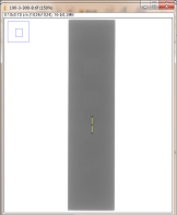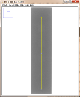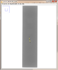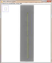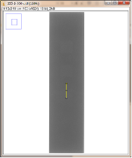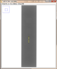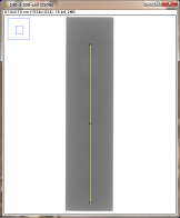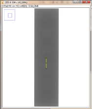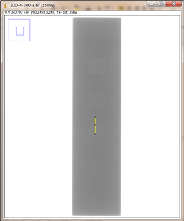 第二组对比:曝光条件,管电压为200kV,管电流为3mA,积分时间为300ms,采用大焦点(1.0mm)时,对比灵敏度试块2%灰度变化如图3-8,采用小焦点(0.4mm)时对比灵敏度试块2%灰度变化如图3-9,其上面的图是对应的DR数字图像,使用ImageJ软件处理,在对比灵敏度试块的2%孔画根线,得出其灰度变化情况