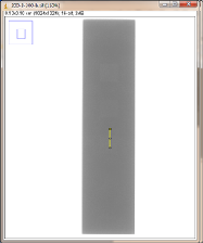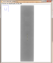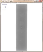 如图3-22为对比灵敏度试块的DR成像,多次拍摄都能分辨出2%孔;如图3-23为对比灵敏度试块整体灰度的变化情况;图3-24为对比灵敏度试块的2%孔的灰度变化情况。使用ImageJ软件处理DR图像,在对比灵敏度试块的数字图像表面上画根线,得到了灰度的性变化图(如图3-23),可以判断出大概在对比灵敏度试块的2%孔上灰度差百分比在20%左右,然后在用ImageJ软件在对比灵敏度试块的2%孔上画根线,得到了它的灰度变化情况(如图3-24)