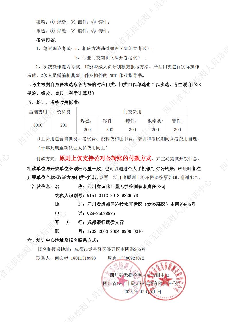 关于举办2025年7-9月无损检测人员资格考核班的预通知