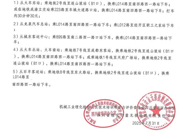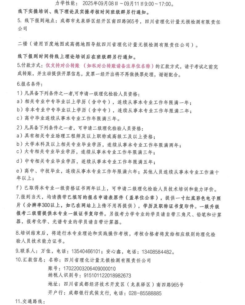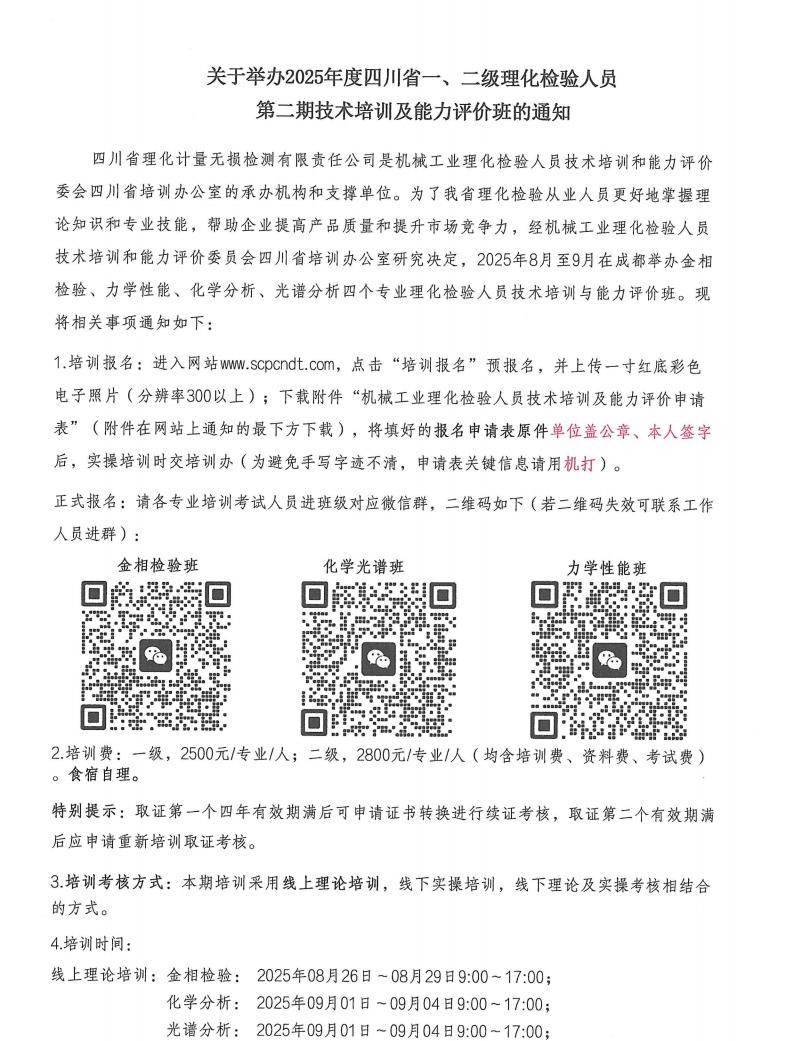 关于举办2025年度四川省一二级理化检验人员技术培训及能力评价班的通知