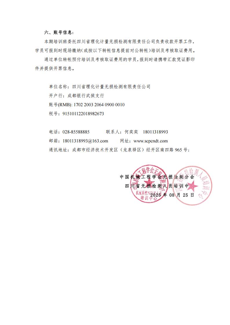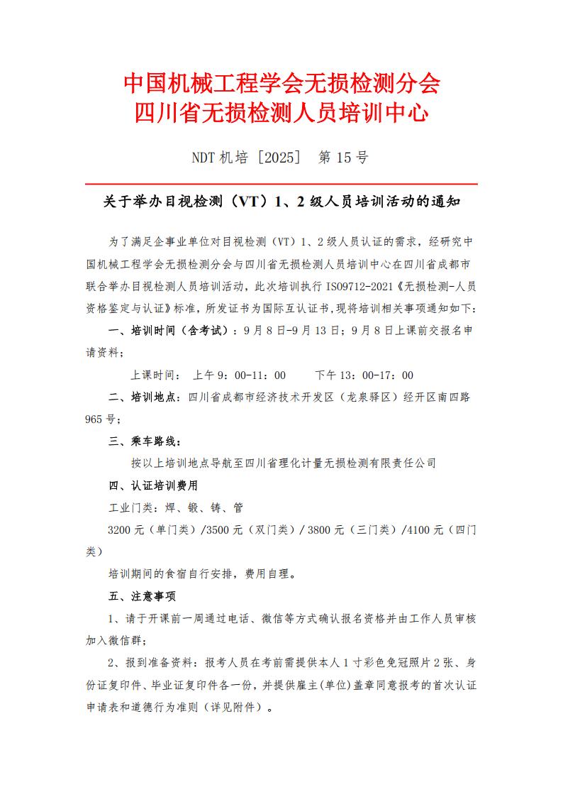 关于举办2025年12月四川省机械行业无损检测1级和2级人员磁粉资格取证及考试换证的