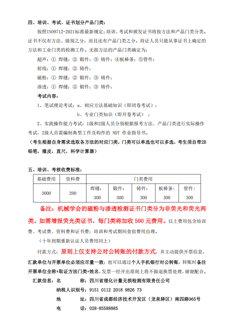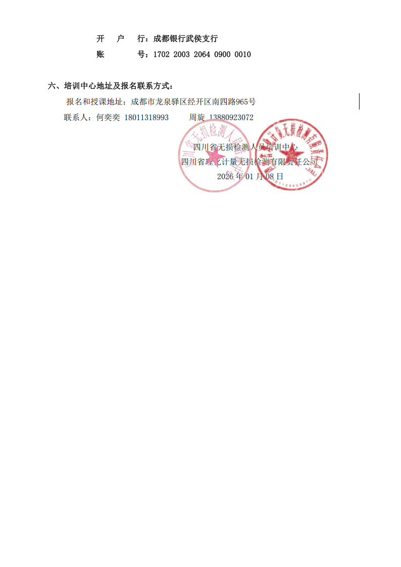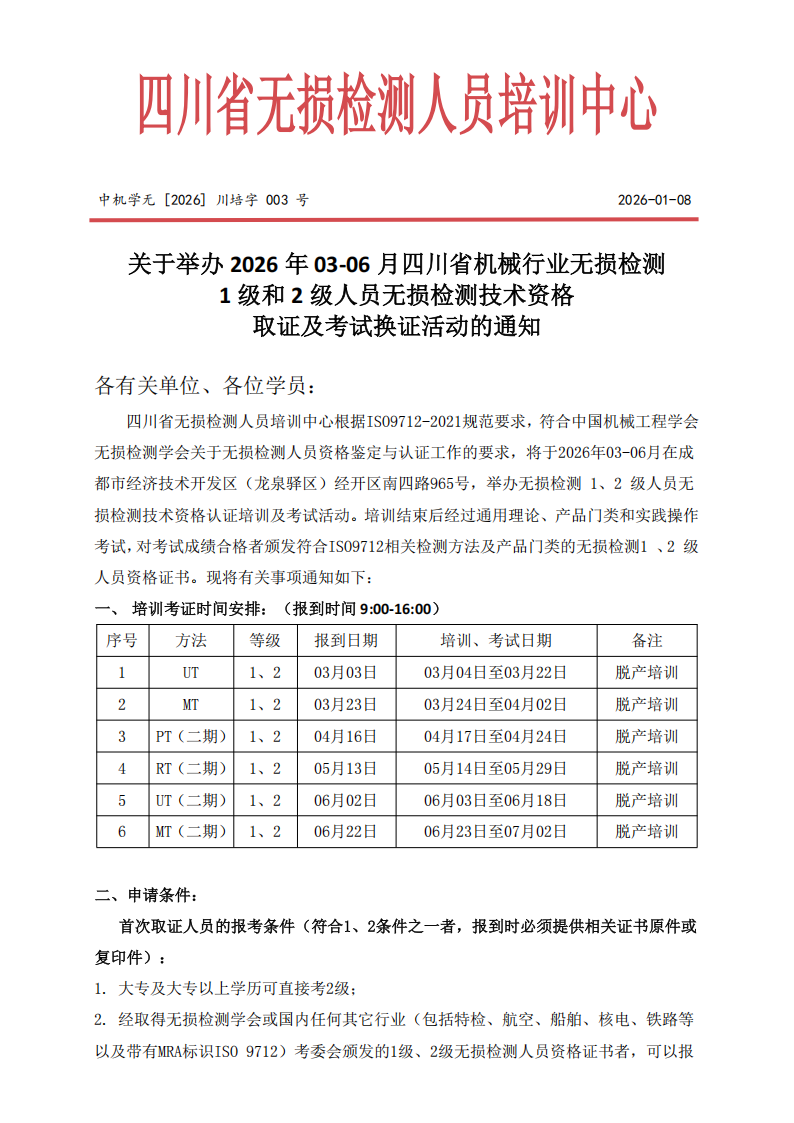 关于举办2026年01月四川省机械行业无损检测1级和2级人员渗透资格取证及考试换证的通知
